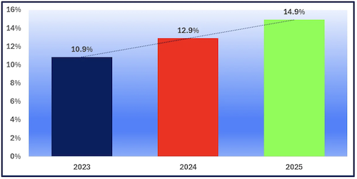 | Figure 1: Ecommerce Revenue as Percentage of Total Sales, 2023-2025 |