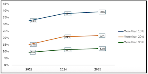 | Figure 2: Percentage of Distributors Exceeding Ecommerce Penetration Thresholds, 2023-2025 |